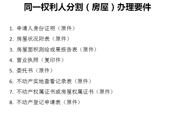 同一权利人分割(房屋)办理要件