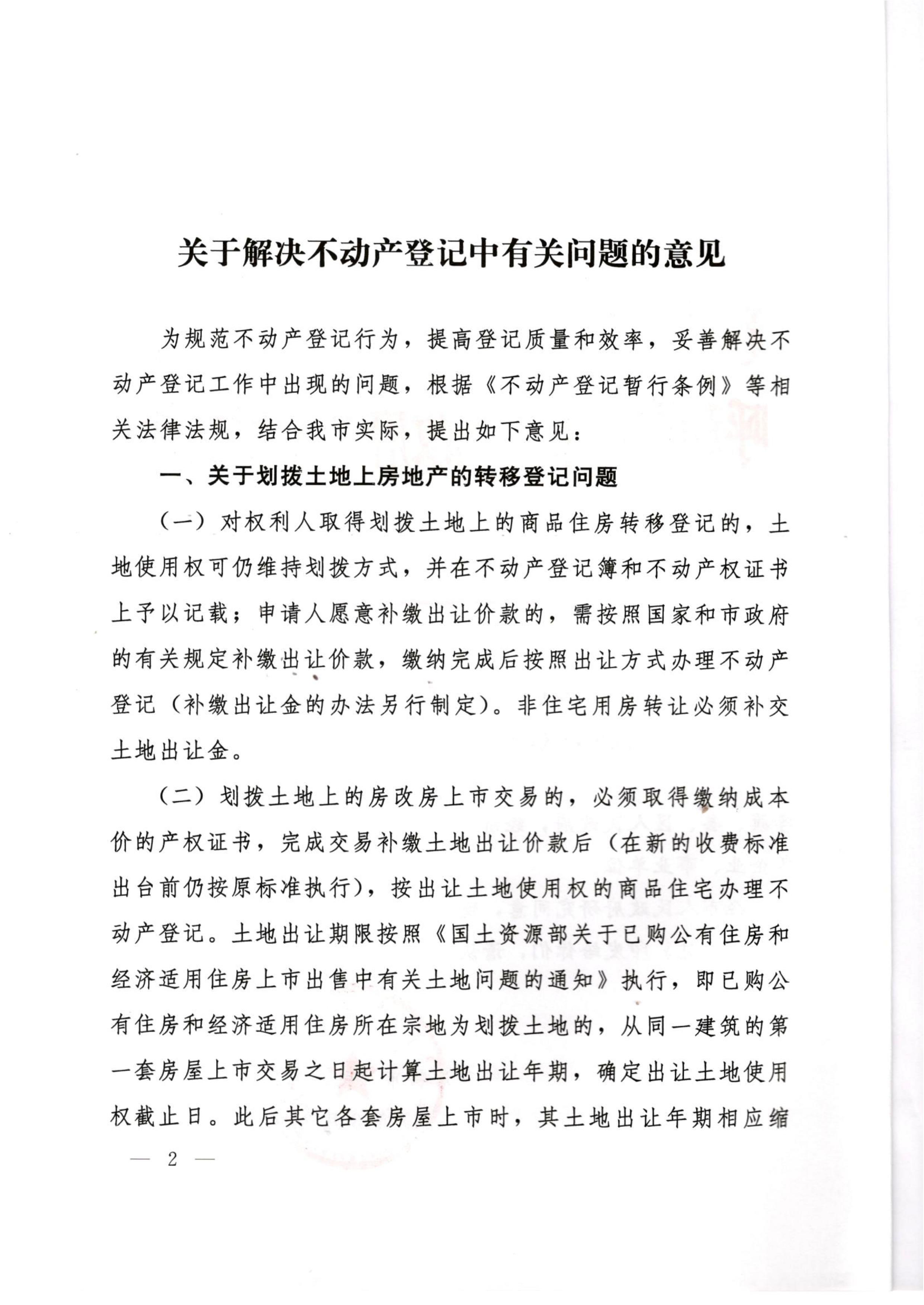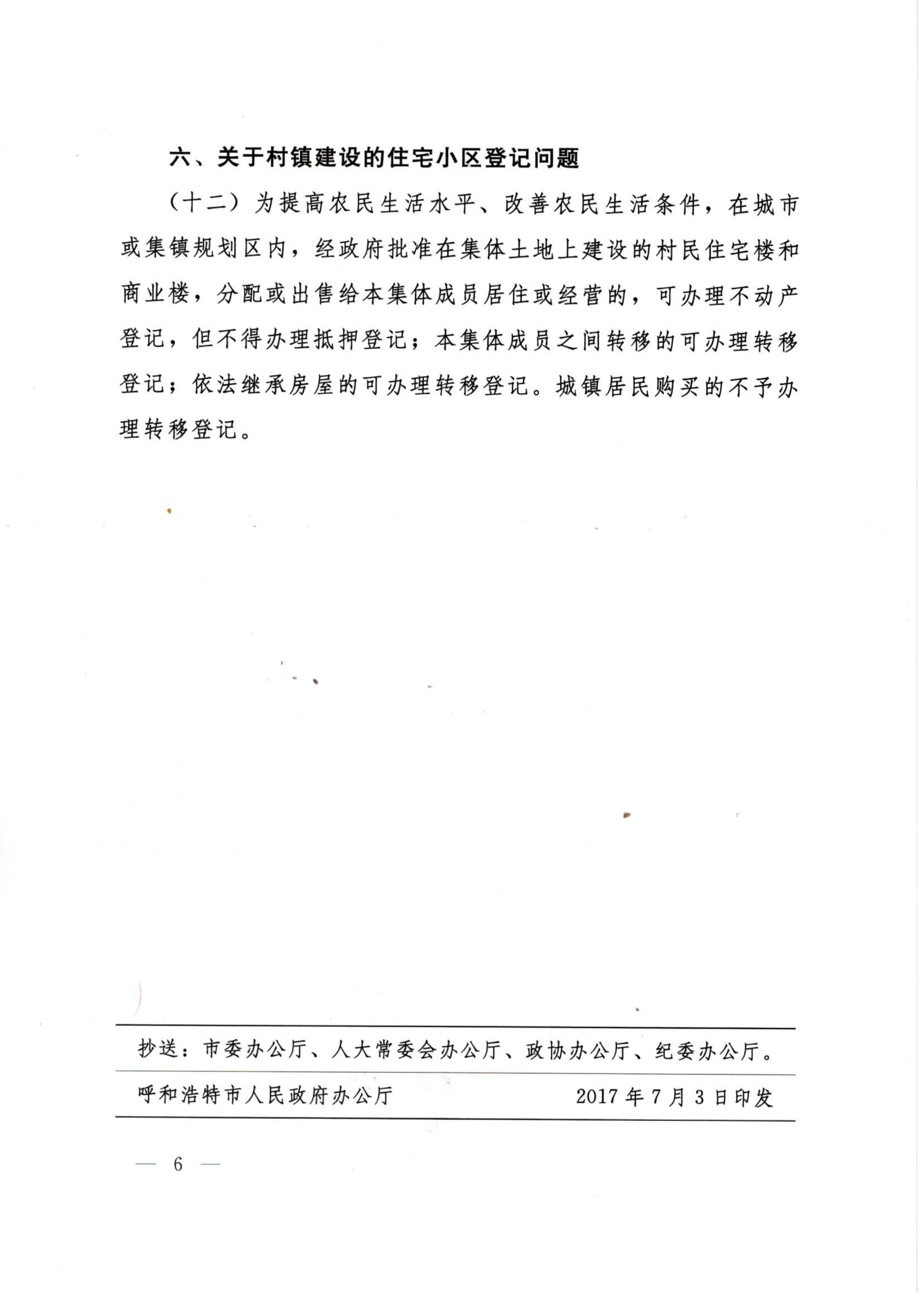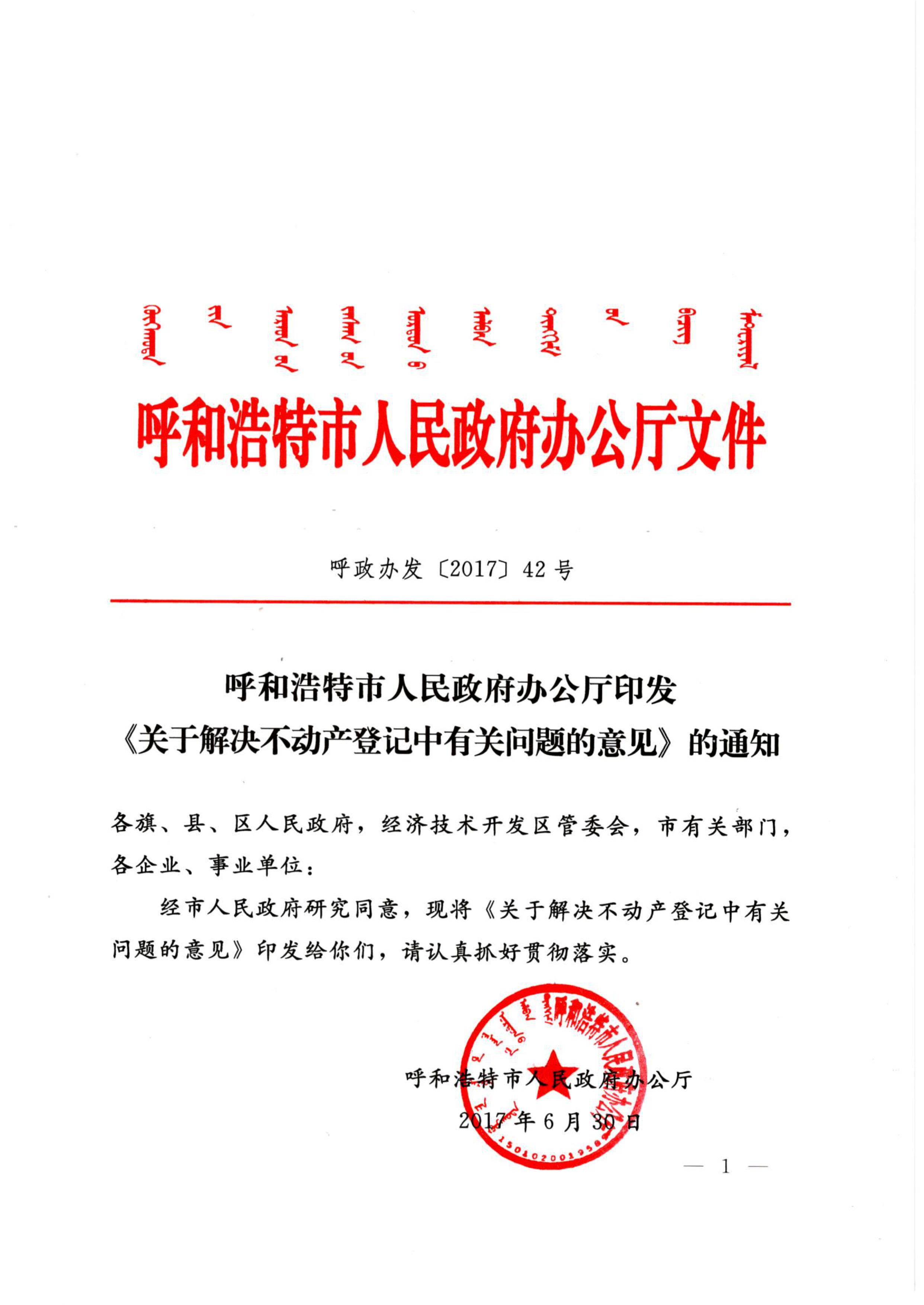 呼和浩特市人民政府办公厅印发《关于解决不动产登记中有关问题的意见》的通知